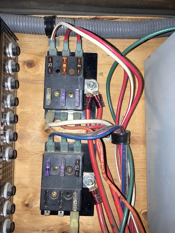 Bottom set. (The top left 3A fuse was used for the step control, but my current step doesn't use it. I refused to 15 amp for a 12V 15A feed to the step area.)