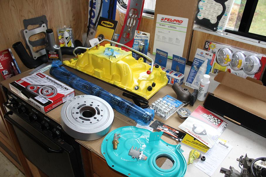 The intake manifold will be bolted on this weekend. The picture is my version of the parts counter.