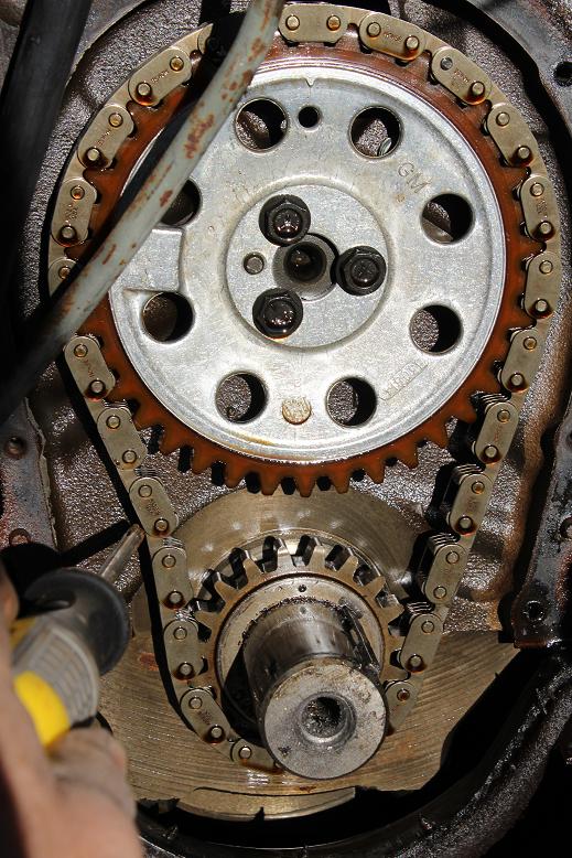 BarthBluesmobileThere was lots of play in the timing chain. Though there is under 40K miles on it, probably the original design specifications did not call on the plastic gears having to remain dimensionally stable for 33 years. Look at the amount of deflection in the chain. No wonder the look under a timing light looked so erratic at idle.